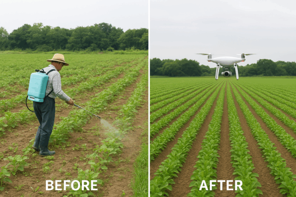 「伸びる・伸ばす」という社名のイメージのもと、地域の農地を守り、持続可能な農業の未来を育てるために、ドローンやトラクターを活用した作業代行を行っています。